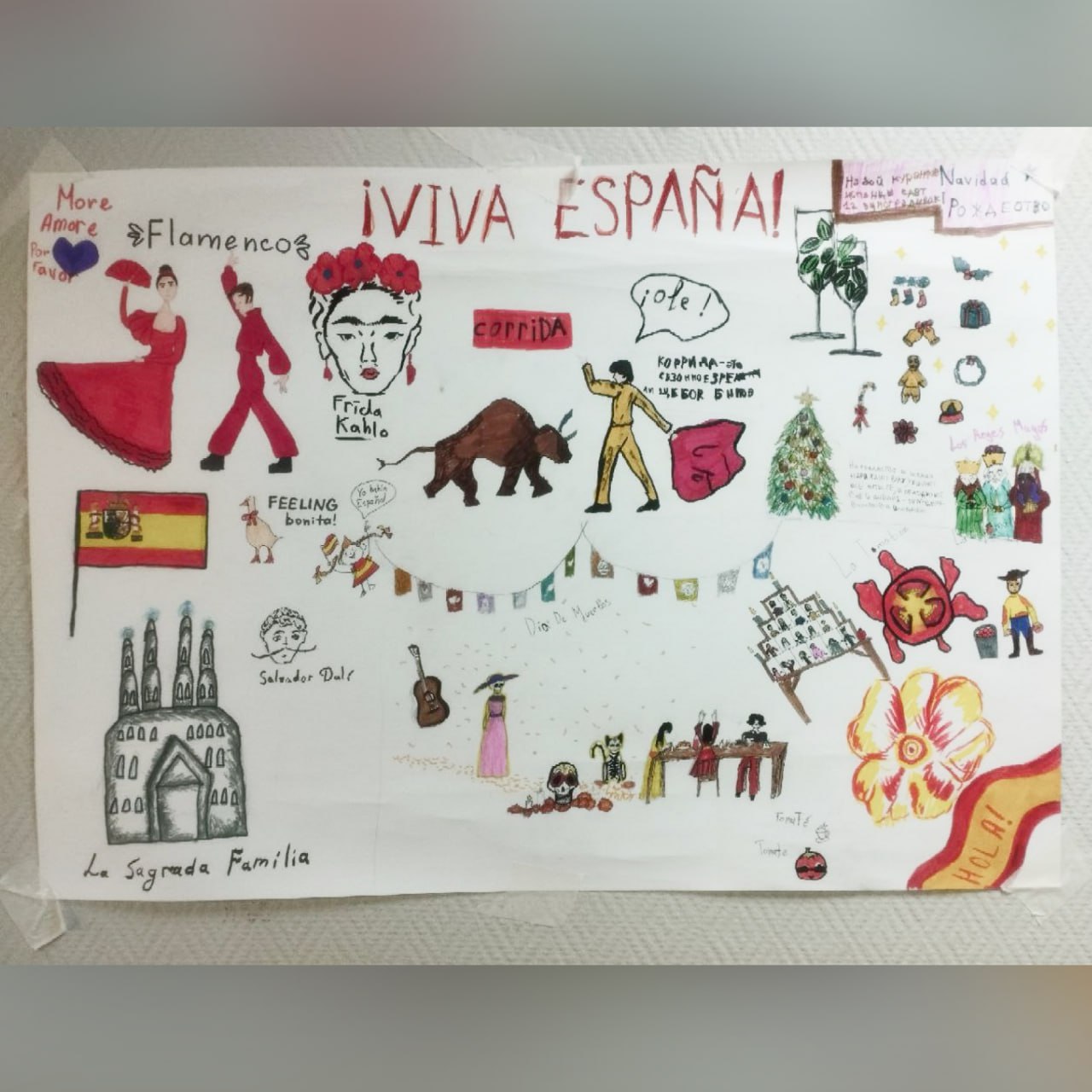 А на прошлой неделе ребята начали подготовку к месяцу иностранных языков —  сделали плакаты, посвященные разным странам.